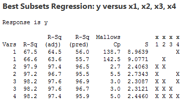 ÃÖ·® ¿¹Ãø º¯¼ö°¡ 4°³ÀÎ ¸ðÇüº¸´Ù Ç×»ó R2°ªÀÌ Å©´Ù. µû¶ó¼ R2°ªÀº °°Àº Å©±âÀÇ ¸ðÇüÀ»