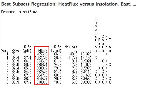 ÀϹÝÀûÀ¸·Î PRESS¸¦ »ç¿ëÇÏ¿© R-sq (pred)¸¦ °è»êÇϸç, R-sq (pred)°ªÀº ÇØ¼®ÀÌ ´õ Á÷°üÀûÀÌ´Ù.