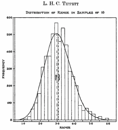 TippettÀº n=2¿¡¼ n=1000 »çÀÌÀÇ Ç¥º» Å©±â¿¡ ´ëÇÑ Æò±Õ, ºÐ»ê, ¿Öµµ ¹× ÷µµ¸¦ Á÷Á¢ °è»êÀ» ÇÏ¿´À¸¸ç