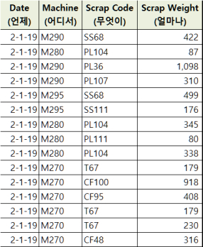 ¾Æ·¡ ±×¸²Àº »ý»ê ½ºÅ©·¦ÀÇ ½Ã±â, Àå¼Ò, ³»¿ë¿¡ ´ëÇÑ ¿ø½Ã µ¥ÀÌÅÍÀÇ ÀϺθ¦ º¸¿©ÁØ´Ù.