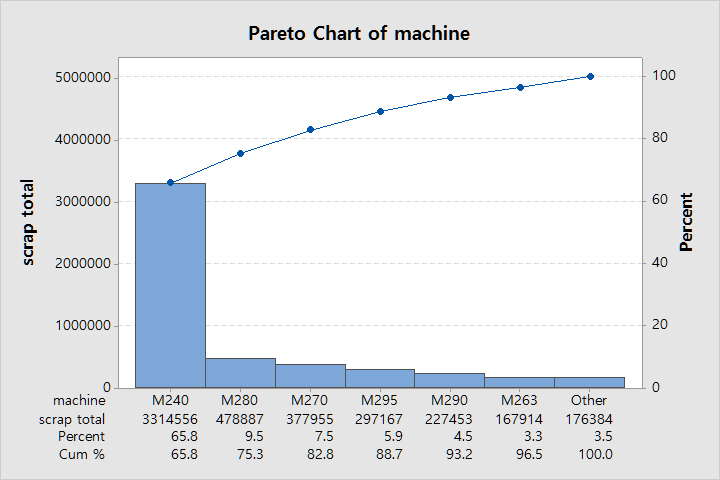 ÀÌÁ¦ M240ÀÇ Äڵ庰 ½ºÅ©·¦ÀÇ Pareto Â÷Æ®¸¦ ¸¸µç´Ù.