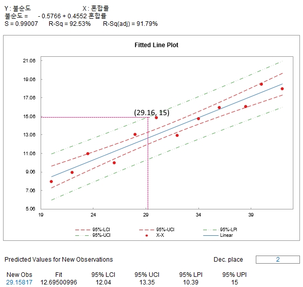 ¹Ù·Î ÀÌ 29.16 °ªÀ» ¿¹Ãøº¯¼öÀÎ ¾È·áÈ¥ÇÕ·üÀÇ Çã¿ë°øÂ÷»óÇѰª(USL)·Î »ïÀ» ¼ö ÀÖ°í, ÀÌ °æ¿ì