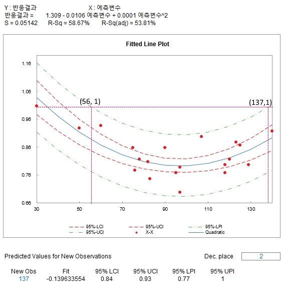 ÀÌ ÇÁ·Î¼¼½º¿¡¼ ¿¹Ãøº¯¼öÀÇ LSL(56, 1.0), USL(137, 1.0)À¸·Î Çã¿ëÂ÷¸¦ °áÁ¤ÇÒ ¼ö ÀְԵȴÙ.