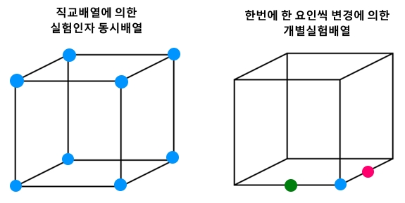 ±×·¸Áö¸¸ ½ÇÇè°èȹ(DOE)¿¡¼´Â Á¢±ÙÇÏ´Â ¹æ¹ýÀÌ ¿ÏÀüÈ÷ ´Ù¸£´Ù. ¾Æ·¡¿Í °°Àº ½ÇÇè¹è¿¿¡ µû¶ó