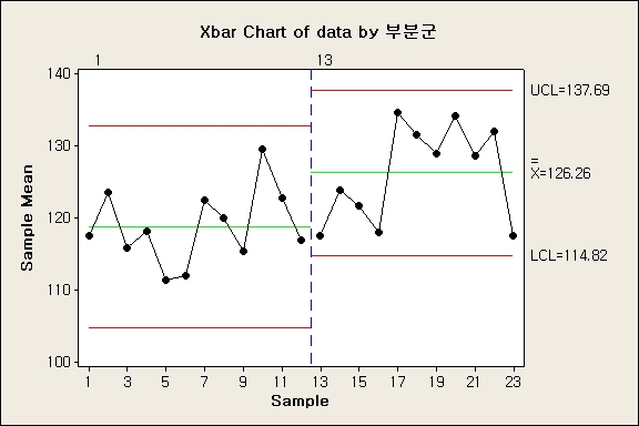 ºÎºÐ±º(13~23)ÀÇ Æò±Õ°ªÀ» Àû¿ëÇÏ¿© »õ·Î¿î Á߽ɼ±=126.26, °ü¸®»óÇѼ±=137.69, °ü¸®ÇÏÇѼ±=114.82 ÀÌ