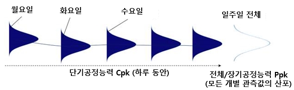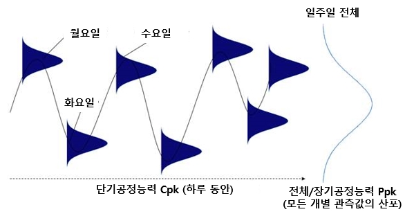 À§ÀÇ ±×¸²¿¡¼ °øÁ¤ÀÌ Á¡Â÷ ¾ÈÁ¤µÇ¾î°¨¿¡ µû¶ó Ppk Áö¼ö¿Í Cpk Áö¼ö°¡ ºñ½ÁÇØÁö´Â ¸ð½ÀÀ»