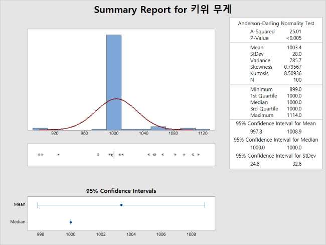 ¹Ú½ºÀÇ Æò±ÕÀº 1003.4g ÀÌÁö¸¸ Ç¥ÁØÆíÂ÷°¡°¡ 28g À¸·Î½á º¯µ¿¼ºÀÌ Å©¼ µ¥ÀÌÅÍÀÇ ¹üÀ§°¡ ³Ð¾î¼