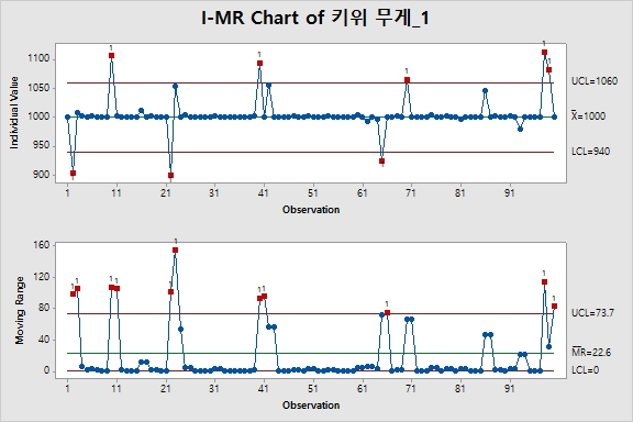 ¿¬¼ÓÇü µ¥ÀÌÅͷΠŰÀ§ ¹Ú½ºÀÇ ¹«°Ô¸¦ ÃøÁ¤ÇÒ ¼ö ÀְԵǸé I-MR Chart¸¦ ÅëÇØ »ý»ê°øÁ¤°ü¸®ÀÇ