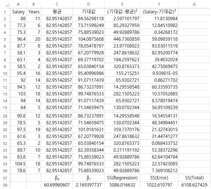 5. ¸¶Áö¸·À¸·Î SS(Regression) °ª°ú SS(Error) °ªÀ» ´õÇÑ´Ù(6108.627429)