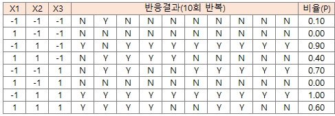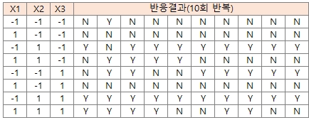 ¿¹¸¦µé¾î, 3°³ÀÇ ¿¹Ãøº¯¼ö·Î ¿ÏÀü¹èÄ¡ ½ÇÇè°èȹÀ» ÇÏ¸é ´ÙÀ½°ú °°Àº 8 RunÀÇ ½ÇÇè¹èÄ¡¸¦ ±¸ÇÒ ¼ö ÀÖ°í,
