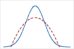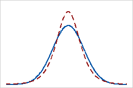 ±×¸²¿¡¼ ½Ç¼±Àº Á¤±ÔºÐÆ÷, Á¡¼±Àº ÷µµ(kurtosis) °ªÀÌ ¾ç¼öÀÎ ºÐÆ÷¸¦ ³ªÅ¸³½´Ù.
