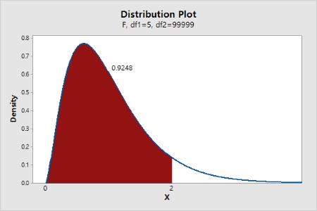 2ÀÇ CDF´Â 0.9248À̸ç, ÀÌ °ªÀº 2±îÁöÀÇ °î¼± ¾Æ·¡ÀÇ ¸éÀûÀ» ³ªÅ¸³½´Ù.