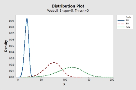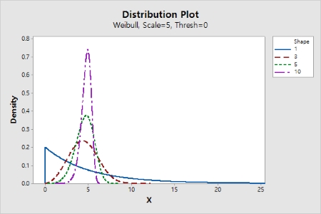 Weibull ºÐÆ÷´Â À½¼ö°¡ ¾Æ´Ñ º¯¼ö¿¡ ´ëÇØ¼¸¸ Á¤ÀǵȴÙ. ¸ð¼öµéÀÇ °ª¿¡ µû¶ó Weibull ºÐÆ÷´Â