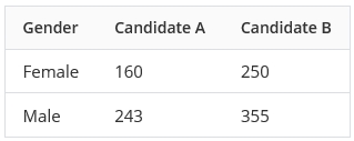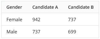 ÀÌ °üÃø Åë°è·®¿¡ µû¸£¸é ¿©¼ºÀÌ A Èĺ¸¿¡°Ô ÅõÇ¥ÇÒ È®·üÀº ³²¼ºÀÌ A Èĺ¸¿¡°Ô ÅõÇ¥ÇÒ È®·üÀÇ 0.95¹èÀ̹ǷÎ,