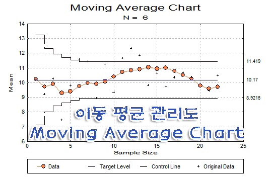 À̵¿ Æò±Õ(moving average)À» Ç¥½ÃÇÏ´Â ½Ã°£ °¡Áß °ü¸®µµÀÇ ÇÑ À¯ÇüÀ¸·Î °ü¸® ÇѰè(UCL ¹× LCL)¸¦