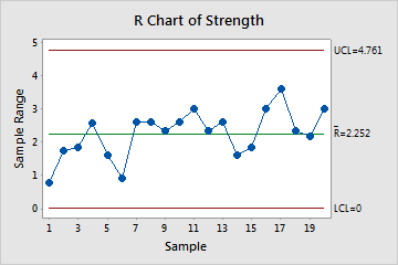 Xbar °ü¸®µµ·Î °øÁ¤ Æò±ÕÀ» ÇØ¼®Çϱâ Àü¿¡ R °ü¸®µµ¸¦ »ç¿ëÇÏ¿© °øÁ¤ º¯µ¿À» °Ë»çÇϵµ·Ï ÇÑ´Ù.