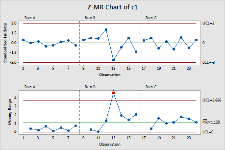 I-MR °ü¸®µµ ´ë½Å Z-MR °ü¸®µµ¸¦ »ç¿ëÇÑ´Ù.